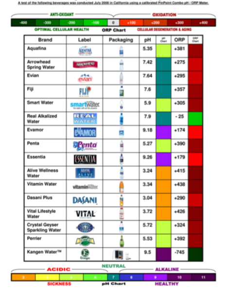 While the body has its own defenses against oxidative stress, these defenses are thought to become less effective as we age. Research suggests that free radicals play a part in a number of degenerative diseases associated with aging, cancer, cardiovascular disease, and Alzheimer’s**. Kangen Water™ contains large quantities of negatively charge ions that act as antioxidants in the body. These ions are measured and expressed as “ORP”—Oxidation Reduction Potential. ORP is a measurement of the Oxidation Reduction Potential of a liquid. Positive numbers mean oxidizers, negative numbers are antioxidants. So Oxidation/Antioxidant potential is measured just like golf: the lower the score the better. The pH however, is like baseball, low scores are bad, below 7 (which is neutral) they mean a solution is acidic. Kangen Water™ contains the greatest antioxidant potential of any water!